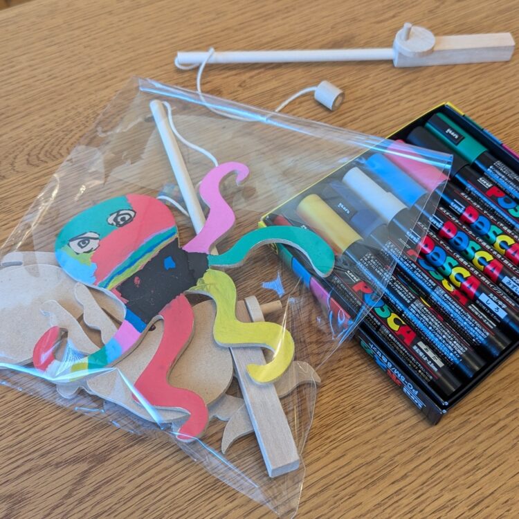 好きな色を塗ってオリジナルの海の生き物を作る木工ワークショップは大人気の釣りセット!